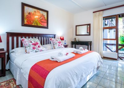 The pool side Side Family Suite – The suite comprises of a main bedroom with a king bed and an en-suite bathroom with a bath and shower. The second bedroom has twin beds (can be replaced with a king-size bed when booking) and a bathroom with a shower only. The suite also has a private lounge overlooking the pool and the Outeniqua Mountains.